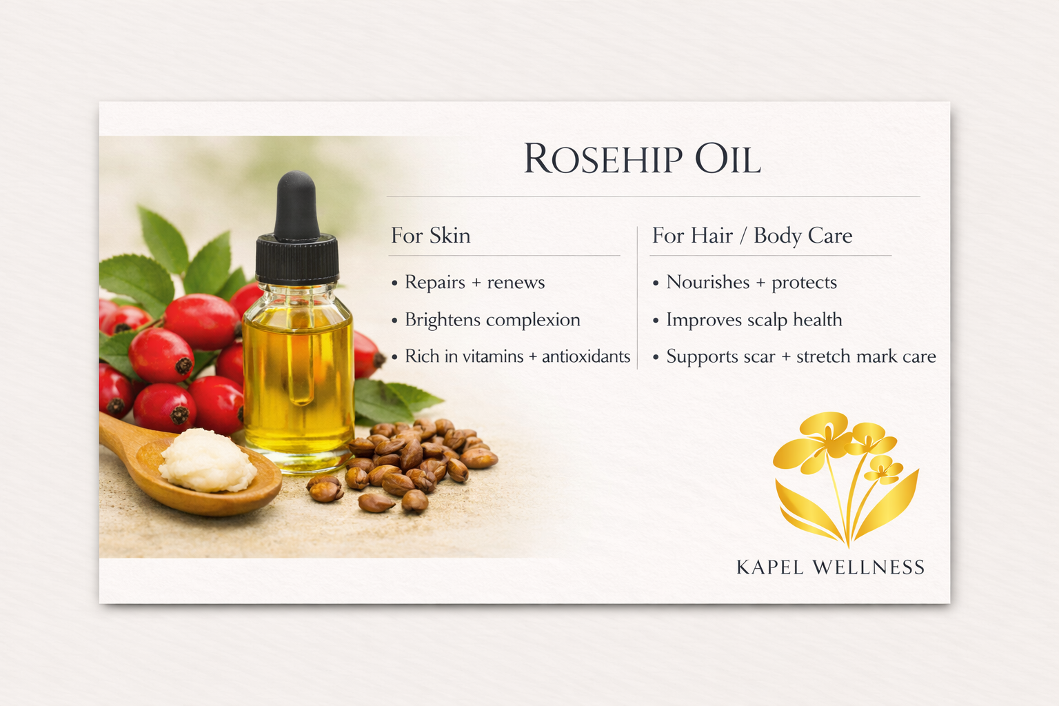 How to Use: Apply 3–5 drops to clean skin morning or night. Massage upward and outward for best absorption.
